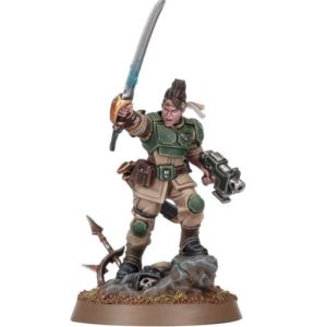 Stood atop a scenic base littered with the rubble, remains, and blasphemous sigils of Cadia’s fall, Minka is a fantastic addition to any Astra Militarum army or collection, and a great painting project for fans of her books.