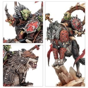 Gitmobs are Snarlfang-riding grots who do not fear the light of day. Rather, they covet the power that so obviously rivals that of the Bad Moon. Upon defeating their enemies, they scavenge the equipment of the fallen, accruing metal they can use to rob Hysh of its power.